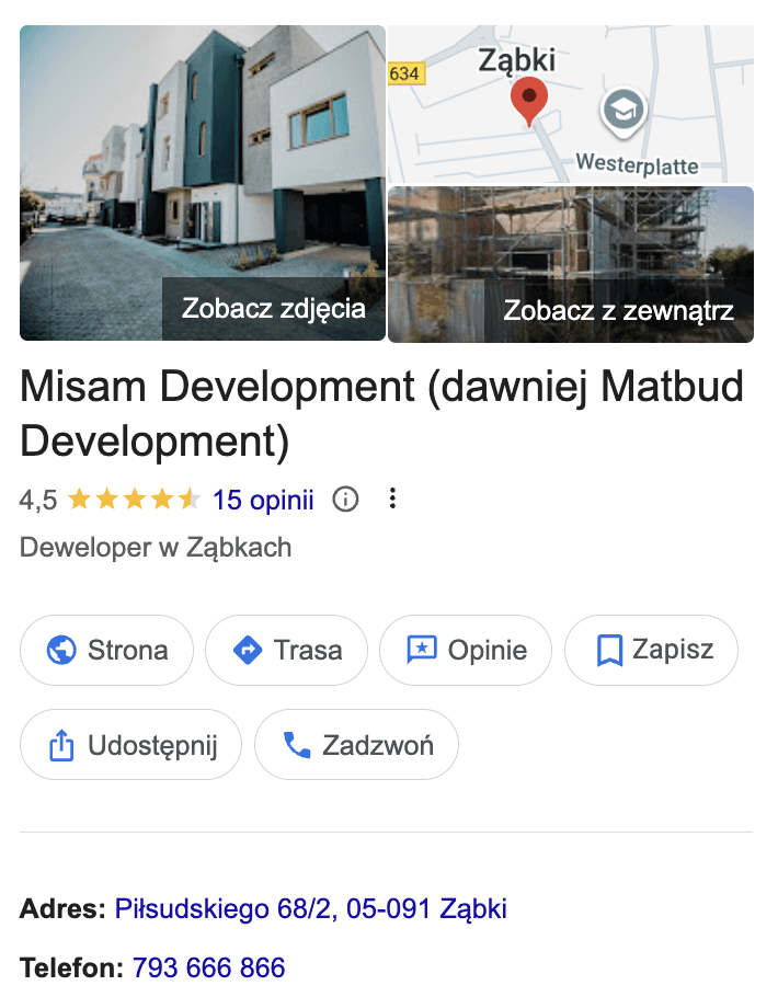 analiza fraz: „matbud development”, „matbud ząbki”, „misam development”,